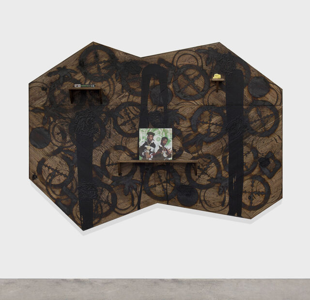 Rashid Johnson was born on 1977 in Chicago IL is an Artist. Rashid received his BFA from Columbia College Chicago in 2000 and an MFA from School of the Art Institute of Chicago in 2005. Rashid Johnson American b1977 is a sculptor and photographer who works in a wide range of everyday materials including wax wood steel brass shea butter ceramic tile and such found objects as books records VHS tapes live plants and CB radios.
